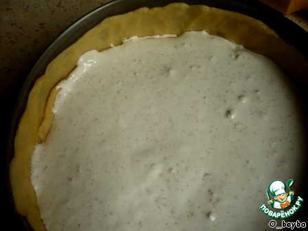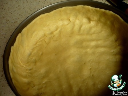 В форму кладём наше тесто и руками расправляем по форме. Делаем высокие бортики.