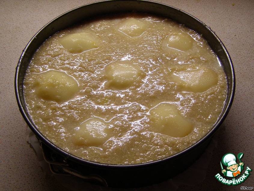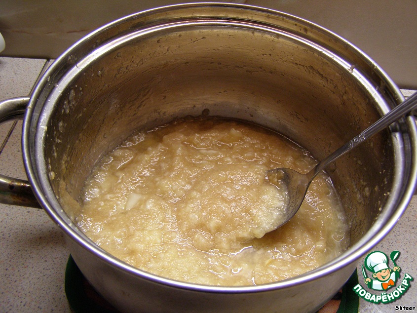 Проварить измельченные груши на медленном огне в течение 7-10 минут. Груши слегка потемнеют и дадут сок.