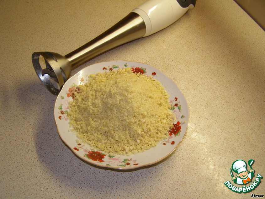 Измельчить очищенный миндаль, используя блендер или кофемолку.