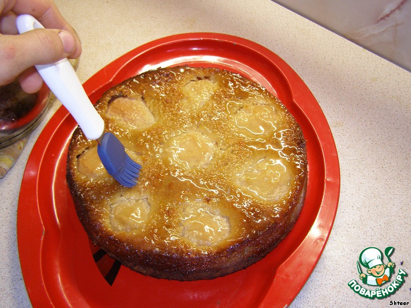 При помощи силиконовой кисти смазываем верх и бока нашего торта уваренным соком.