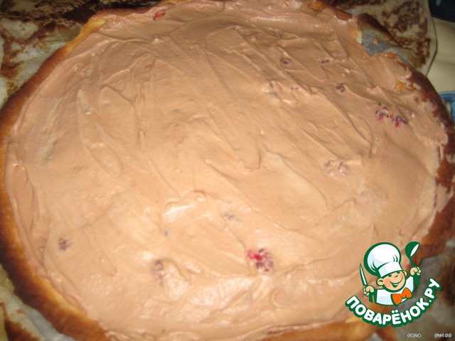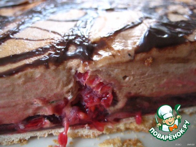 | В рецепте этого тортика выпекается только корж. Сама начинка - двухслойная. Первый слой - малиновый, второй - шоколадный крем. Процесс приготовления совсем не сложный, большую часть времени занимает охлаждение. |