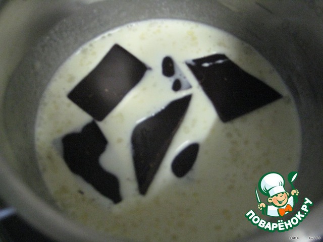 Далее - по инструкции на желатине или агар-агар, поскольку способы приготовления немного отличаются. Если используем агар-агар - нужно перекипятить сливочно-шоколадную смесь около 2 мин., при использовании желатина - кипятить не нужно.