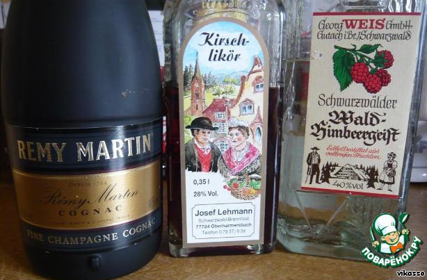 Добавляем имеющийся в наличии алкоголь. Я предпочитаю вишневый ликер, но кто-то любит коньячком тесто пропитать или решиться на шнапс.