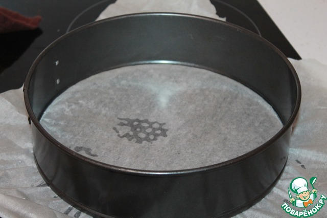 Далее берем разъемную форму, на дно больше чем диаметр выкладываем бумагу для выпечки, защелкиваем форму. Потом вы поймете для чего мы так делаем.