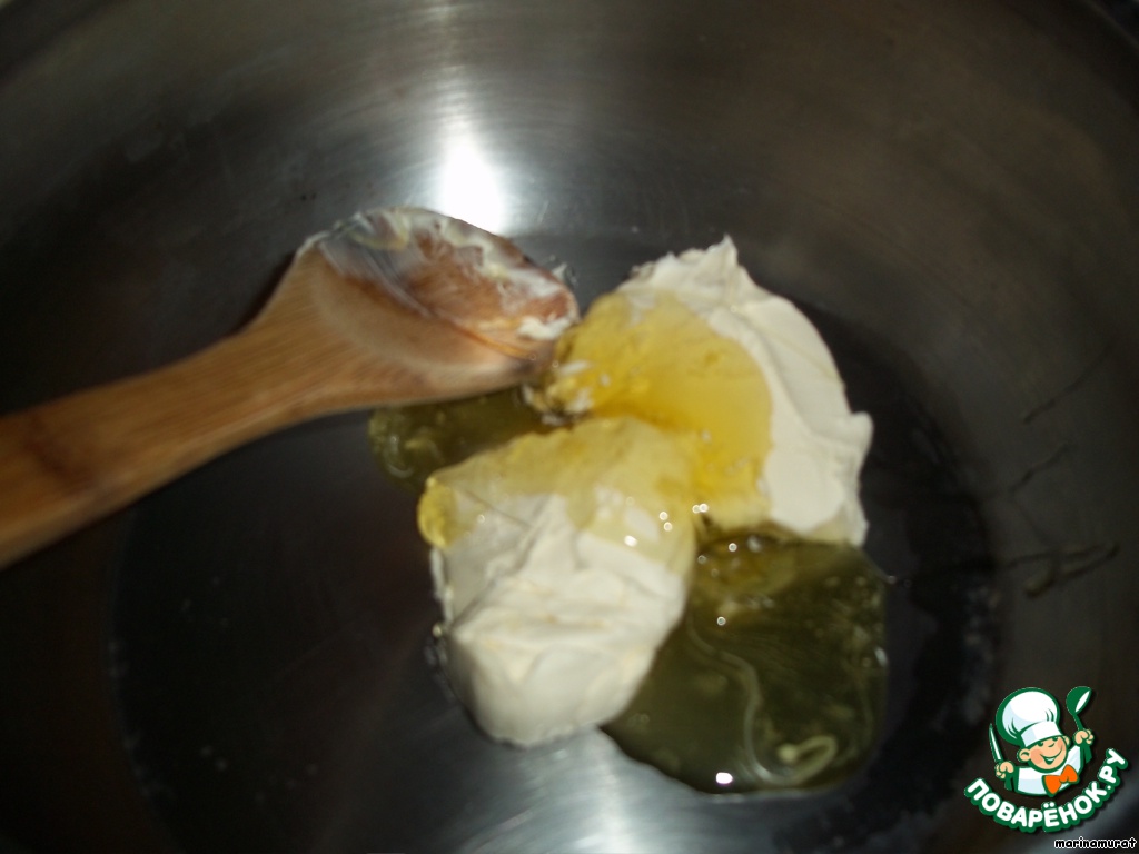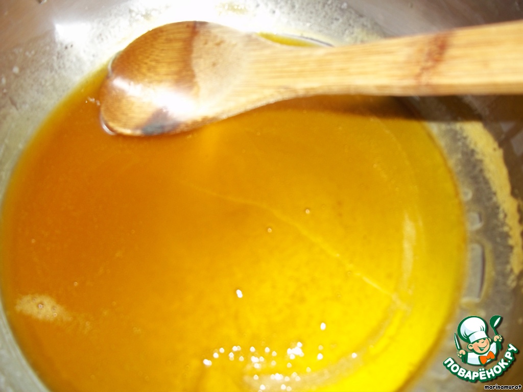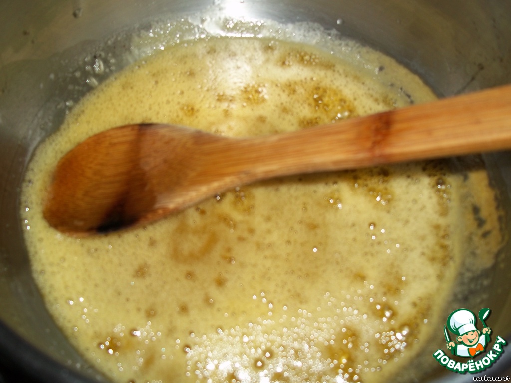В кастрюлю кладем масло и мед, огонь ниже среднего.