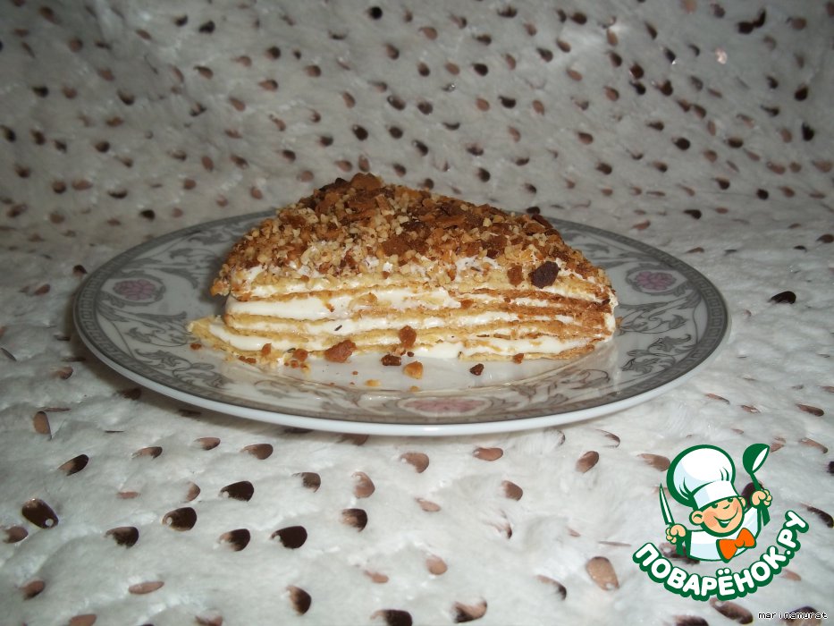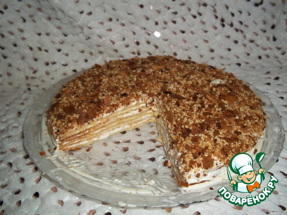Замечания: торт очень сладкий из-за коржей, поэтому можно смело использовать другой крем, несладкий (я попробую смешать сливочный крем со сливками). Мужу понравился очень, он любитель баклавы. Вот по сладости он такой же как турецкая баклава или даже слаще. Ну и сгущенка: если хотите торт пышнее, используйте вареную сгущенку, она гуще и, следовательно, не будет так растекаться.