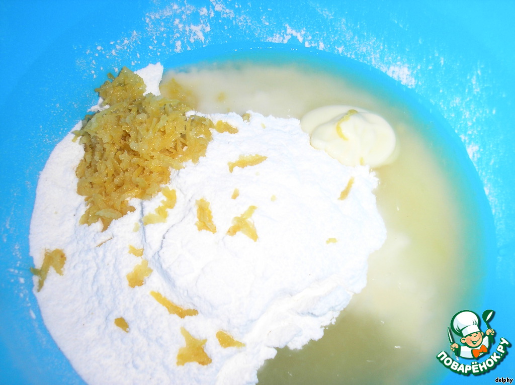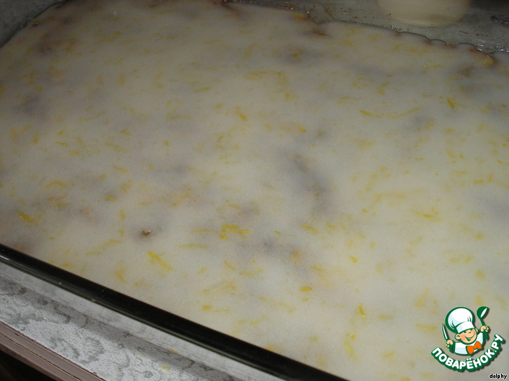 Тем временем сделайте глазурь, смешав сахарную пудру, масло, цедру лимона и 1/4 стак. лимонного сока.