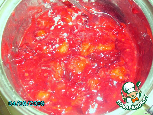 Делаем начинку: ягоду разморозить, сок слить в кастрюлю.