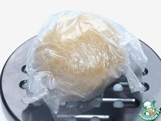 Кладем тесто в пакет и убираем в холодильник на полчаса.