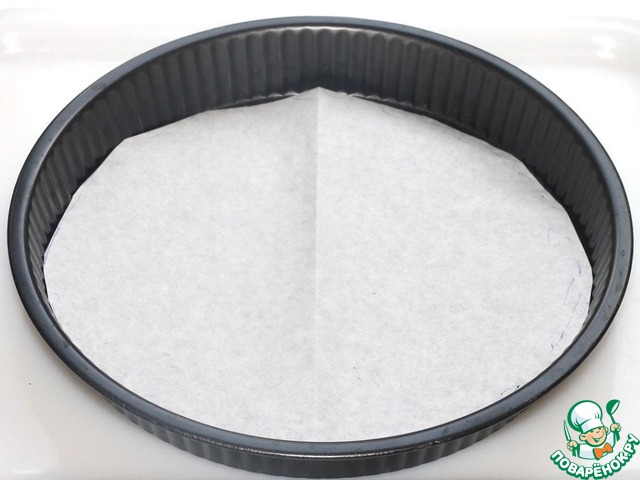 Вырезаем круг из бумаги для выпечки и кладем на дно формы.