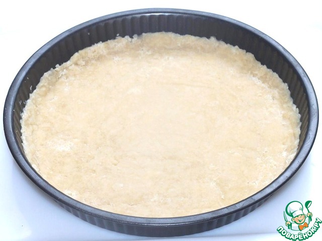 Достаем тесто из холодильника, выкладываем на круг и раскатываем по диаметру формы. Протыкаем вилкой тесто в нескольких местах.