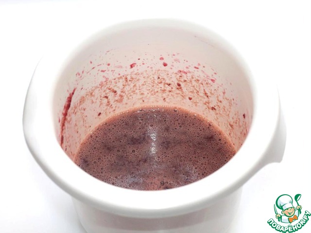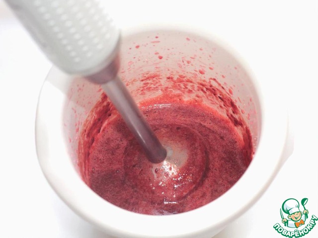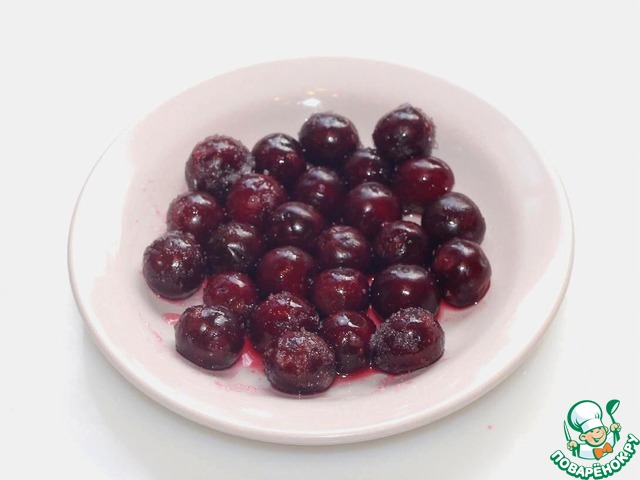 Кладем вишню в блендер, добавляем 2 - 3 ст. л. сахара и пюрируем.