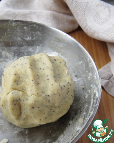 Размягченный маргарин нарезать кусочками и растереть с 3 ст. л. сахара. Добавить просеянную муку 1 стакан ( может понадобиться чуть больше) и 1 ст. л. мака и замесить нелипкое песочное тесто.