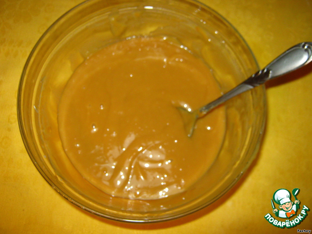 Делаем крем: в сваренную сгущенку добавляем сливочное масло.