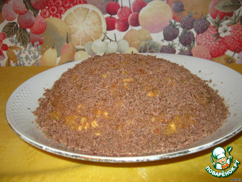 Добавляем постепенно крем и лепим торт... Сверху посыпаем шоколадом.