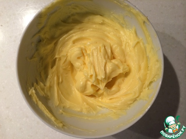Затем добавить в крем размягченное сливочное масло (100г), взбить (примерно 5 минут, при этом тесто станет более жидким) и убрать в холодильник.