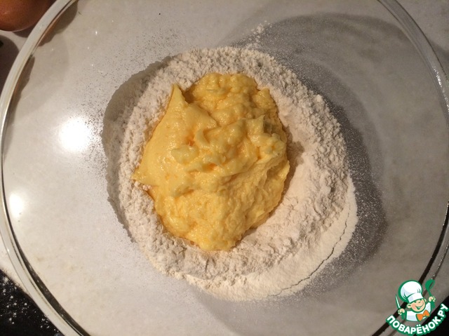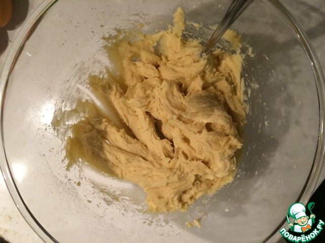 Перемешать (я перемешивала ложкой). Как и было написано в найденном мною рецепте, тесто получается очень мягкое, но муку добавлять не нужно.