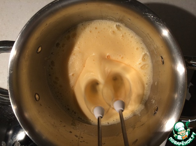 3 яйца взбить с сахаром (45 г) в кастрюле до образования светло-желтой воздушной массы. Добавить сок двух лаймов (я выжимала сок руками) и немного мелко нарезанной цедры.