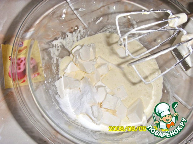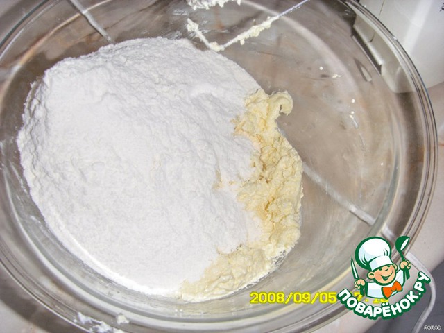 Желтки взбить с сахаром, после кладем размягченное масло.