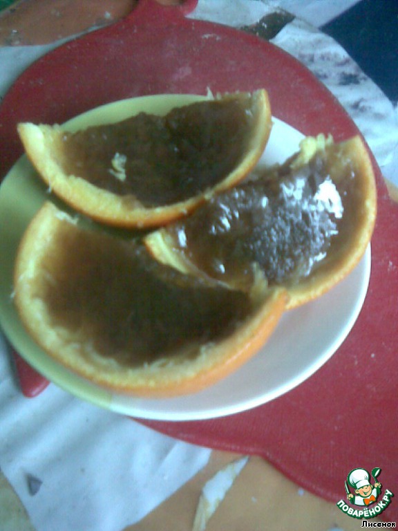 А в корочки от апельсинов я залила фруктовое желе, остудила, порезала и готов еще один десерт.