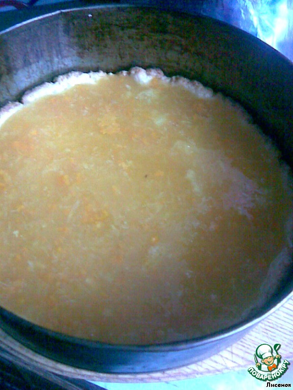Вылить на корж готовое желе и отправить в холодильник до застывания желе(примерно 1 час).
