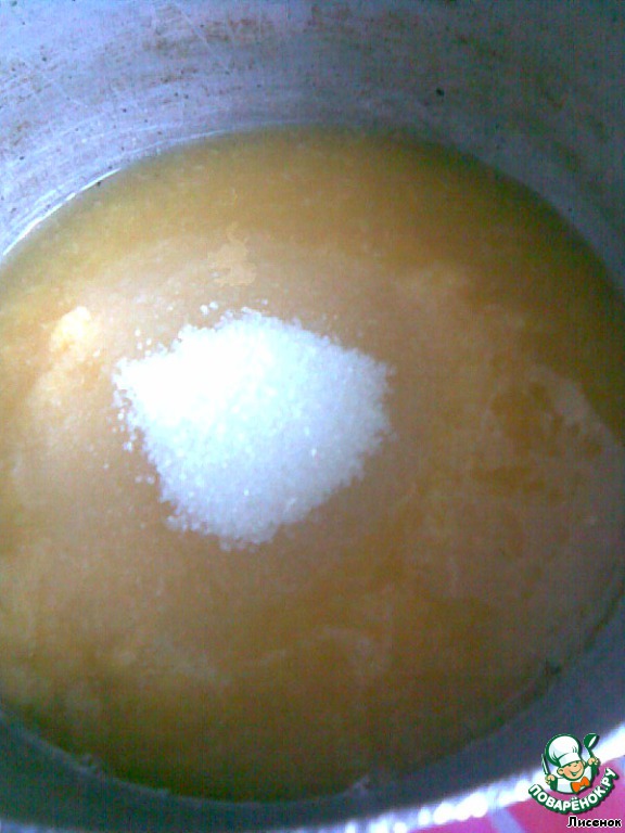 Закипятим сок, добавим сахар. Когда сахар растворится, добавить желатин. До кипения не доводить.