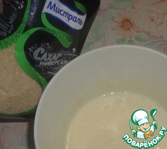 Приготовим тесто для торта. Для этого взбиваем яйца с тростниковым сахаром добела.