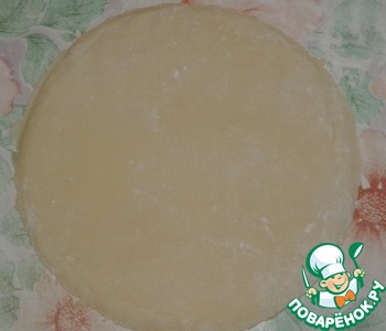 Тесто достаем из холодильника. Тесто делим на 6 частей. Из каждой части раскатываем круг. Я вырезала круги тарелкой. Каждый корж выпекаем на противне в разогретой духовке 10-15 минут при температуре 200 градусов.