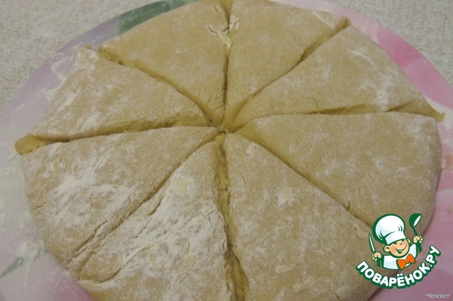 Тесто нужно тонко раскатать, но так как оно очень мягкое, я распределяла тесто аккуратно на противне руками, до определённого размера.