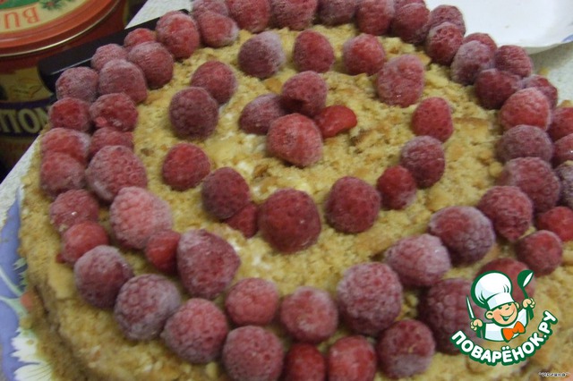 И украшаем ягодами малины. У меня была замороженная ягода.