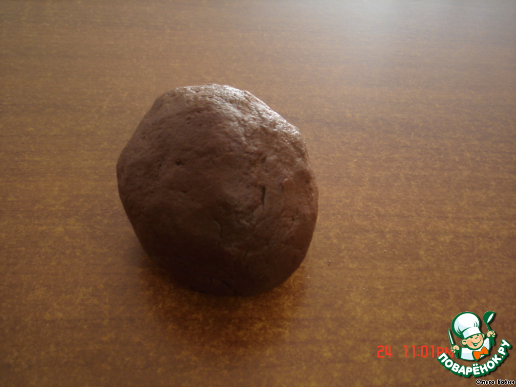 Просеять муку, какао, 2 ст.л. сахарной пудры.