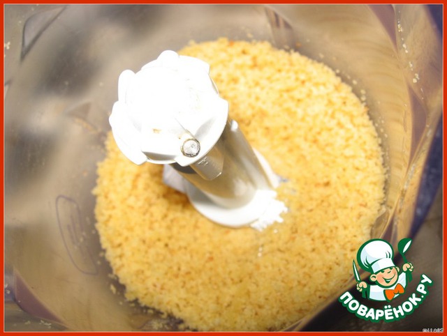 На следующий день, когда тортик пропитается, измельчаем оставшийся корж в крошку.