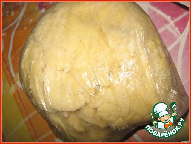 Убираем тесто в пленку. Ставим в холод, на ночь.
