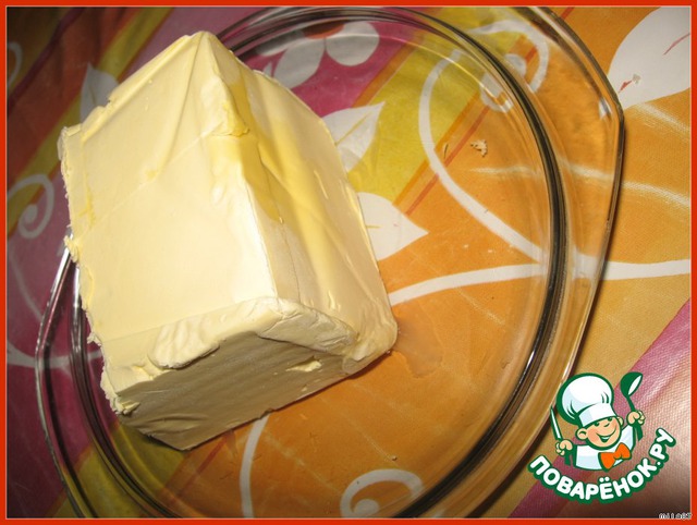 Достаем маргарин из холодильника, даем размягчиться.