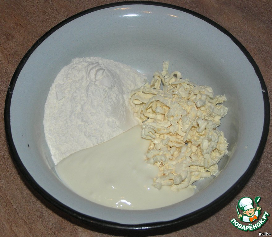 Коржи: маргарин натереть на крупной терке, добавить сметану и муку. Замесить тесто.