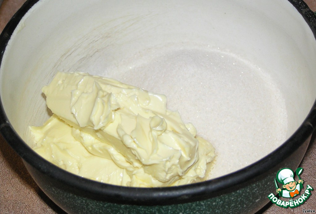 Крем: Размягченное сливочное масло смешать с 0,5 стак. сахара.