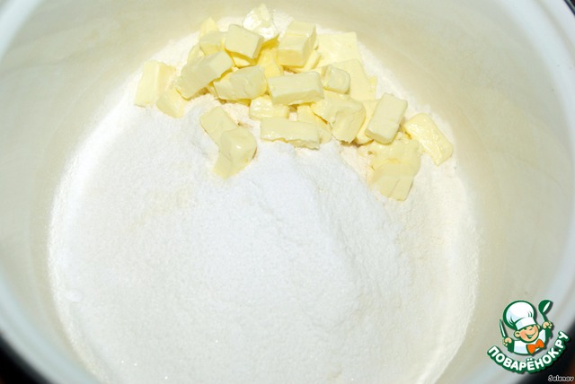 Разотрите руками масло так, чтоб смесь приняла форму мелких крошек.