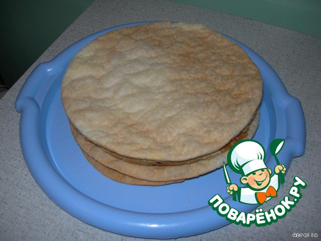 Готовый корж перекладываем на блюдо и занимаемся следующим по той же схеме.