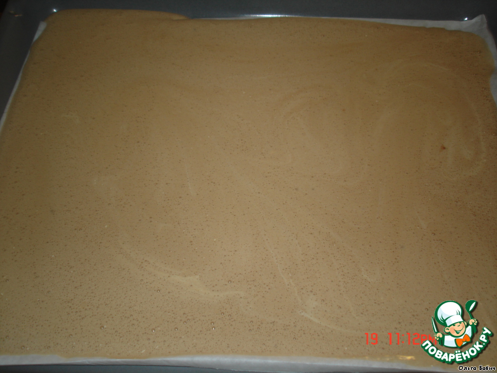 Полученную массу выложить на противень, застеленный пекарской бумагой, смазанный маслом.
