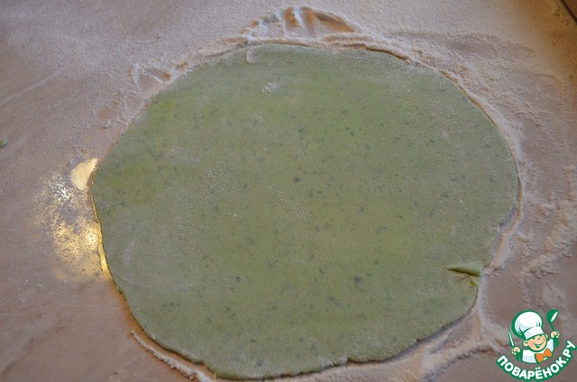 Раскатываем из теста корж, размер коржа нужно будет подбирать под тарелочку, по которой будем обрезать корж. У меня не большая тарелочка, средняя ( размер замерить не могу, дети все линейки растащили)
