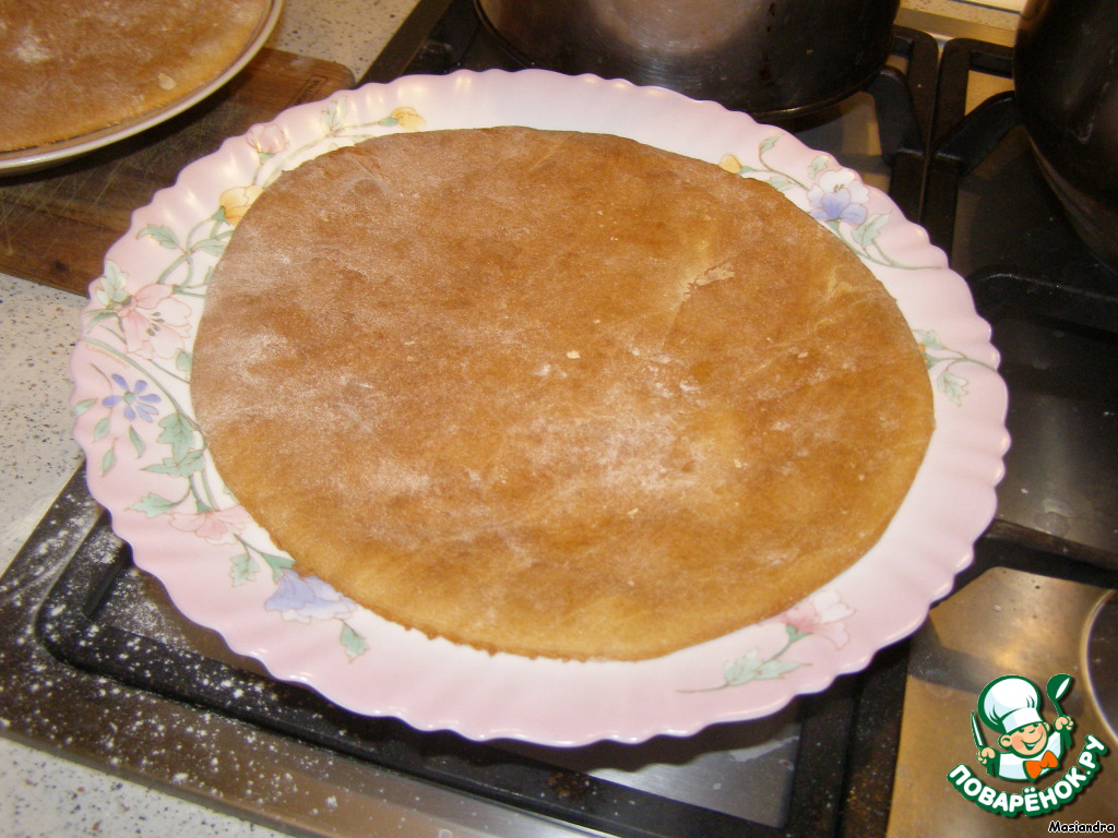 Коржи пекутся ОЧЕНЬ БЫСТРО, времени хватает ровно на раскатку следующего. Поэтому не медлим и раскатываем второй корж.