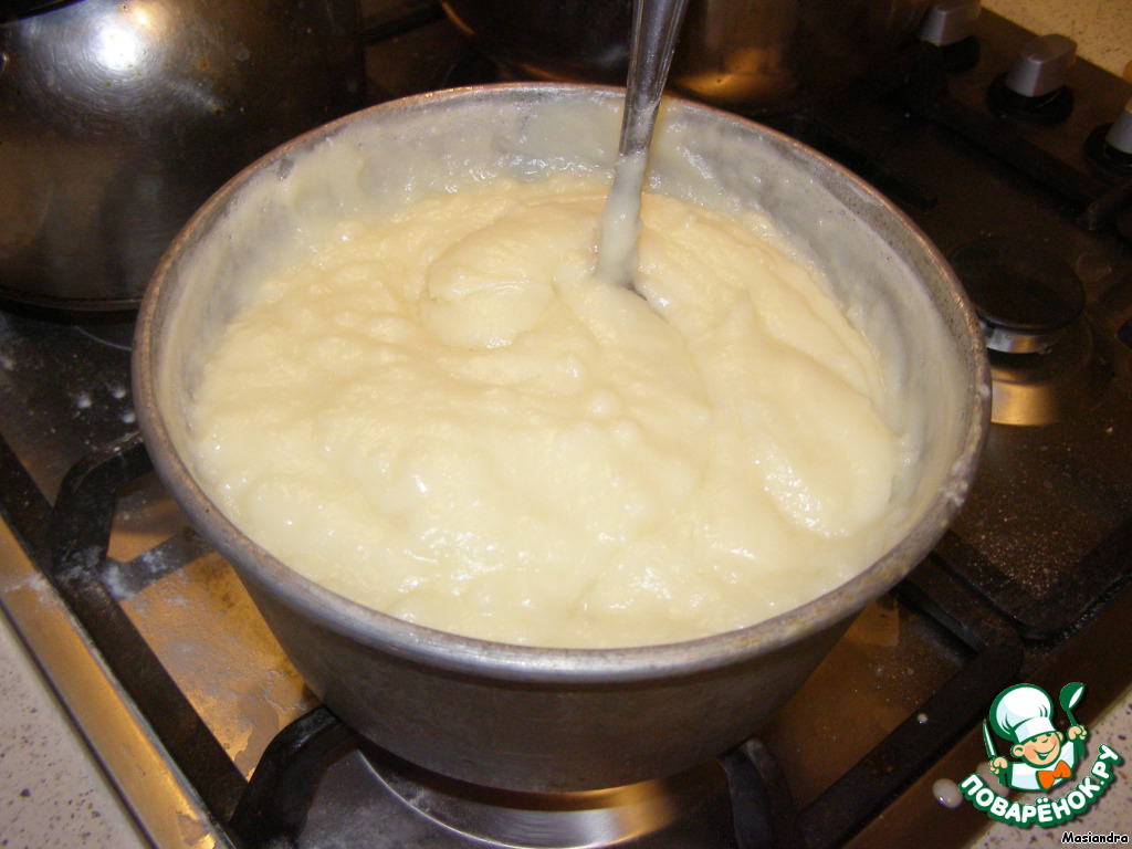 Как только все коржи готовы - приступаем к крему. Яйца взбиваем с сахаром, добавляем ванилин (по желанию) и муку. Хорошенько перемешиваем блендером, чтобы не было комочков, добавляем молоко, хорошенько перемешиваем (можно также блендером), переливаем все в толстостенную кастрюлю и, постоянно помешивая, варим до загустения. Снимаем с огня, добавляем масло, если в процессе варки образовались комочки - решаем проблему опять же блендером.