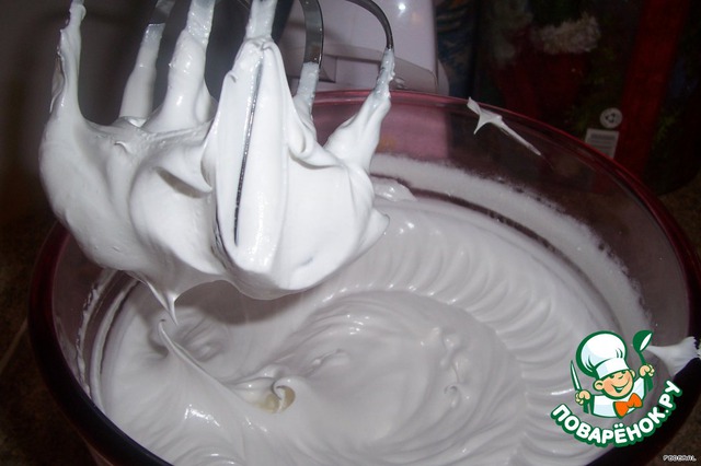 дать закипеть сиропу и покипеть 5 минут, потом тонкой струйкой вливаем в белки и взбиваем ещё 15 минут.