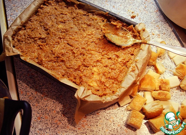 Немного запечённых квадратиков отложить для дальнейшего украшения торта.