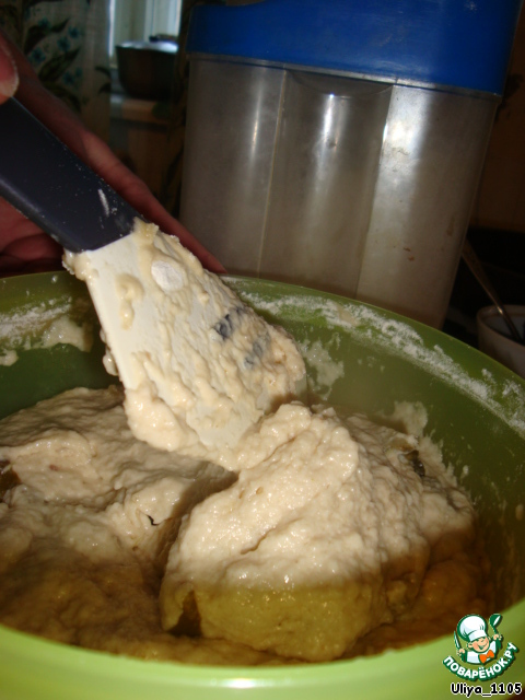 Добавить муку (я сначала кладу 13 - 15 ст.л.) и манку (сначала кладу 4 ст.л.). Перемешать.