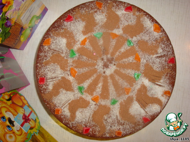 Закрываем другим коржом, его посыпаем сахарной пудрой.