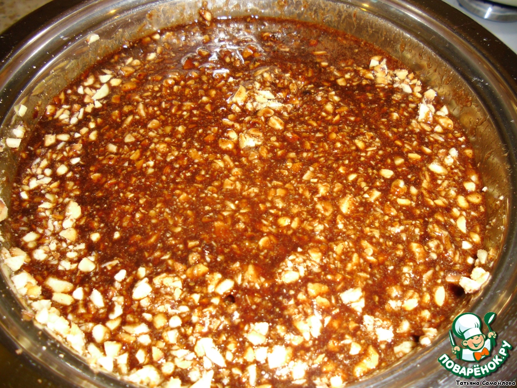Добавить сахар и мед. Вот тут я допустила небольшую ошибку, меда положила немного больше, надо делать все строго по рецепту. Постоянно помешивая, довести до кипения.
