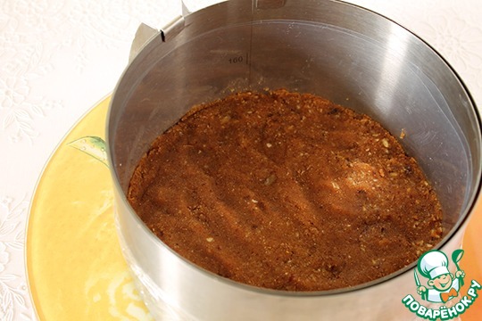 Распределить ровным слоем финиково-миндальную массу и убрать форму в морозилку.