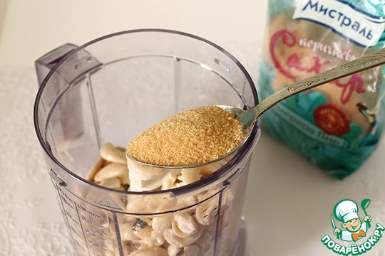 Добавить 2 ст. л. сахара и пробить в блендере, чтобы орехи немного измельчились.