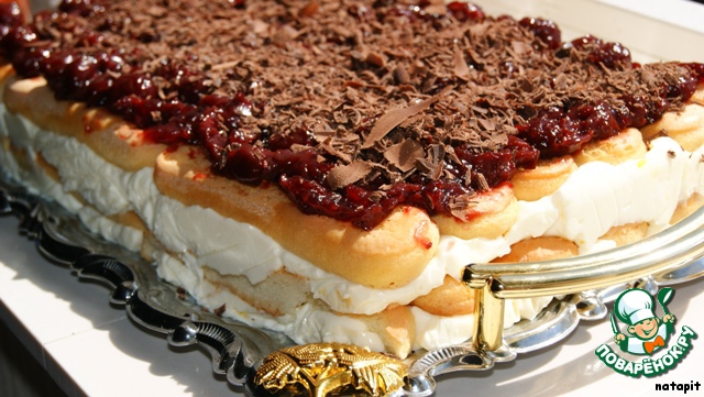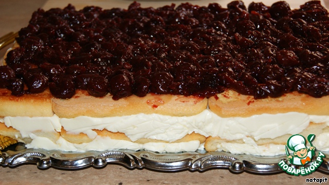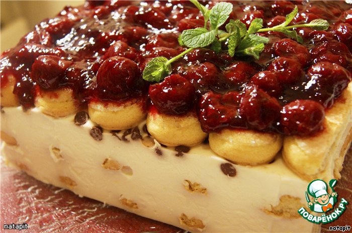 | Этот торт - результат моей выдумки, фантазии и любви, как к панна коте, так и к савоярди! Как же это вкусно! Сливочная панна кота, нежный мягкий бисквит (савоярди), кисленькая вишня и кусочки чeрного шоколада! Обязательно попробуйте! Ну, а если нет возможности купить готовое савоярди, не расстраивайтесь и испеките его сами! |
